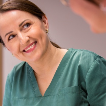 Ala Wagner ist Zahnmedizinische Fachangestellte mit dem Schwerpunkt Erwachsenen- und Kinderprophylaxe. Als echtes Allround-Talent unterstützt sie unser Team ebenso souverän in der Behandlungsassistenz. Ihre Arbeitsweise ist gründlich, effektiv und zupackend – dabei sorgt sie ihrem witzigen Charme zusätzlich für gute Stimmung und entspannte Patienten.